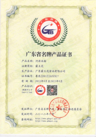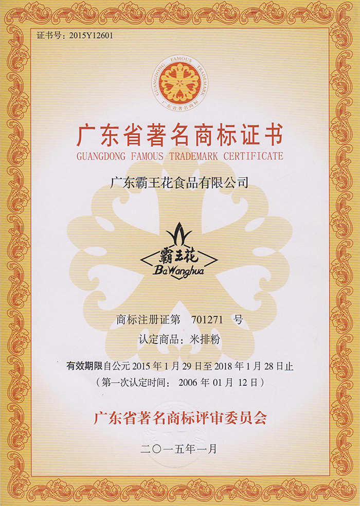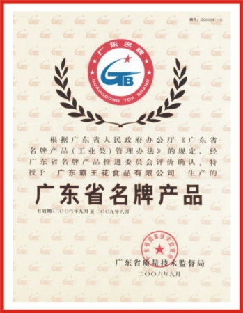 廣東省著名商標證書