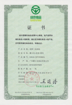 經中國綠色食品發展中心審核,該產品符合綠色食品A級標準。被認定為綠色食品A級產品,許可使用綠色食品標志,特頒此證。