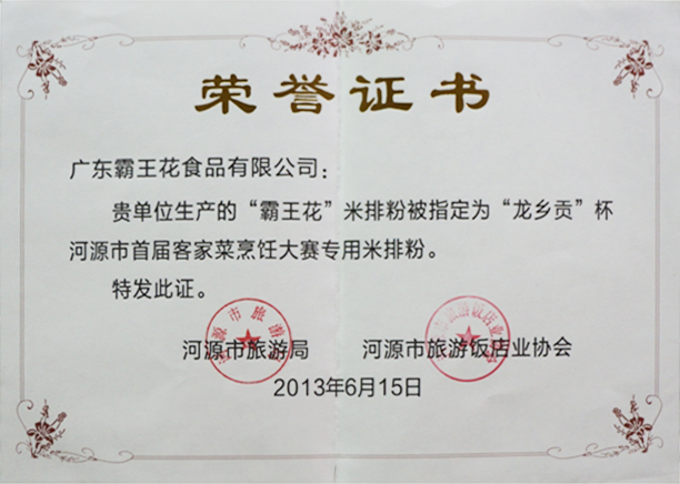 2013年6月15日被河源市旅游局、河源市旅游飯店業協會指定為“龍鄉貢”杯首屆客家菜烹飪大賽專用米排粉。