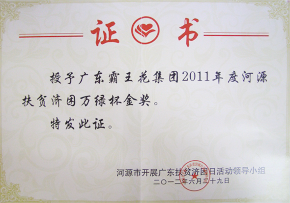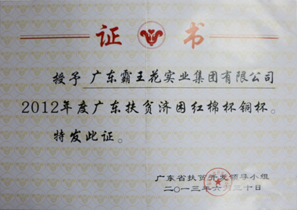 2012年度廣東扶貧濟困紅棉杯銅杯