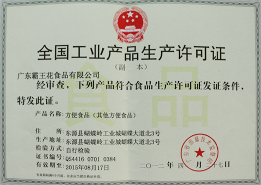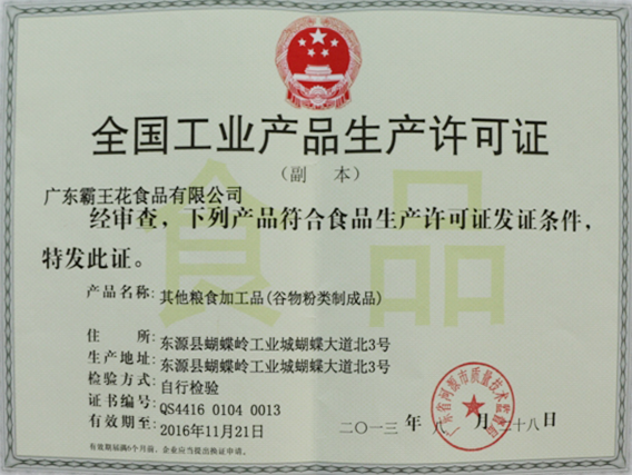 經審查,下列產品(谷物粉類制成品)符合食品生產許可證發證條件,特此發證。