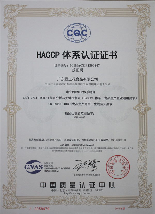 HACCP認證體系證書