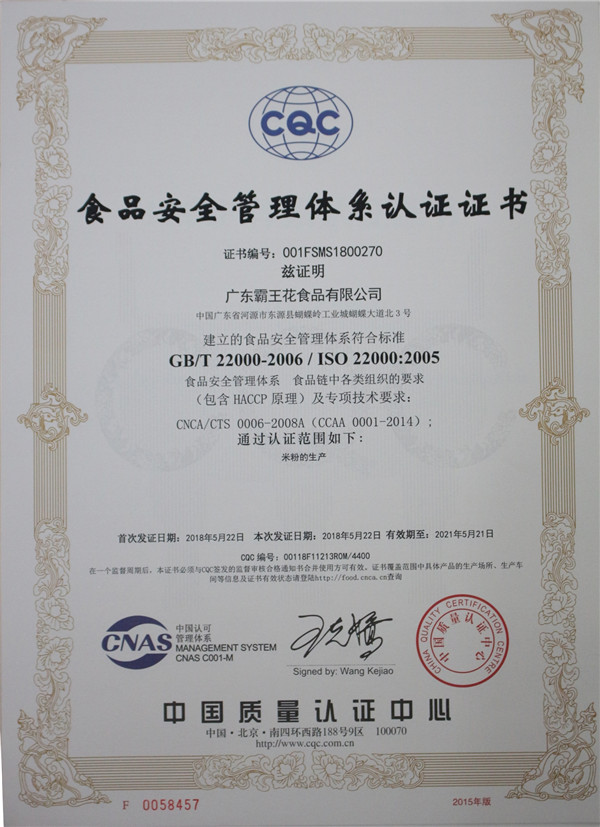 ISO22000體系證書