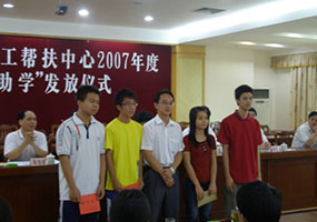 2007年8月21日,朱榮業(yè)總經(jīng)理(前排左三)與受資助貧困大學(xué)生合影